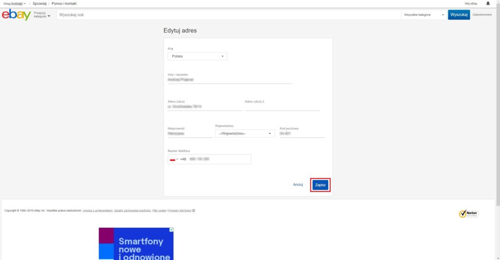 ZWRÓĆ UWAGĘ: Możliwość skonfigurowania kilku adresów wysyłkowych bez wątpienia jest zaletą serwisu eBay.