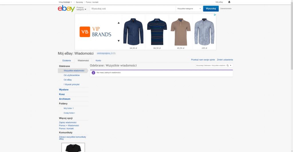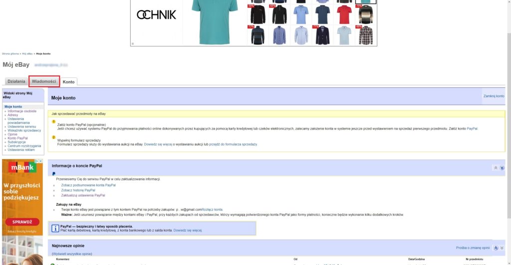 Bardzo ważna wydaje się też zakładka „Wiadomości” (patrz poniżej). Znajdziemy w niej wszystkie komunikaty i wiadomości wysyłane np. przez serwis eBay oraz sprzedających. Tutaj trafi także korespondencja dotycząca pytań o jakiś przedmiot.