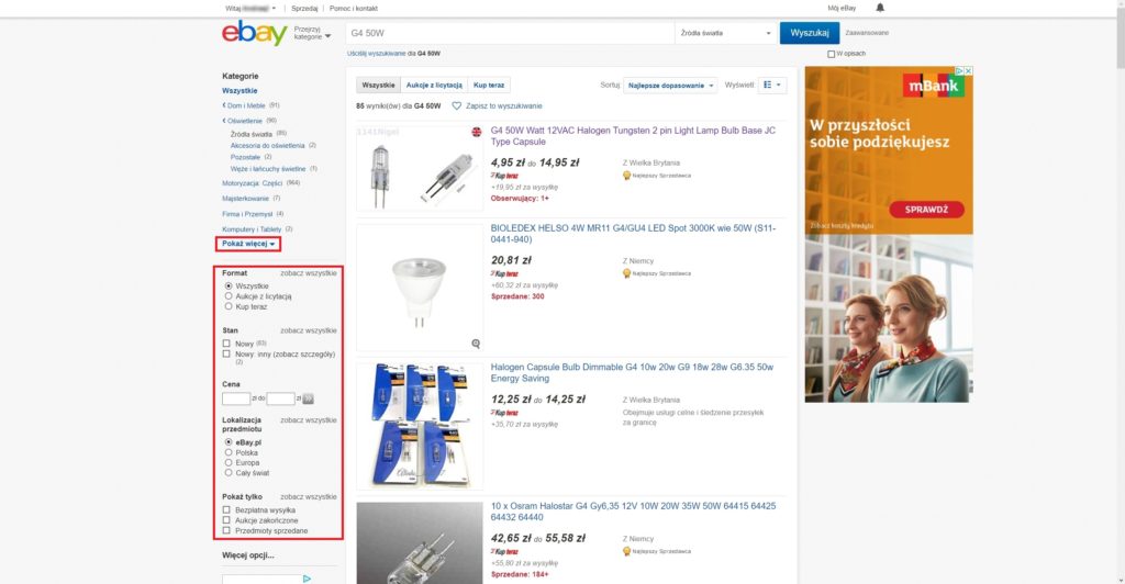 Duża liczba opcji wyszukiwania to zaleta eBay.pl