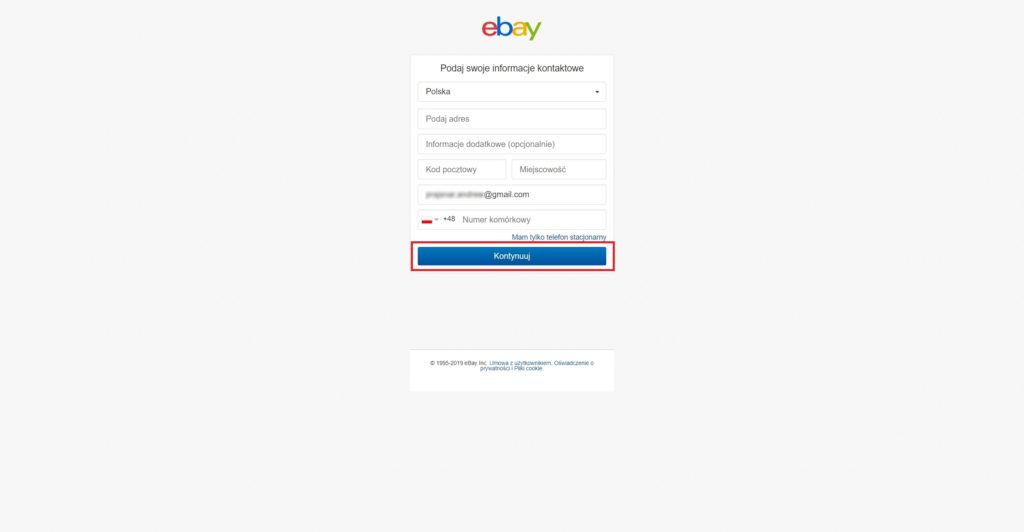W ramach procedury związanej z zakładaniem konta na PayPalu, trzeba będzie podać swój kraj zamieszkania, adres i numer telefonu, a także potwierdzić e-mail (zobacz poniższa grafika). Po wpisaniu wszystkich wymaganych informacji, klikamy na przycisk z napisem „Kontynuuj”.