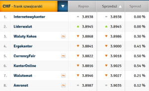 kurs franka tabela kurencja
